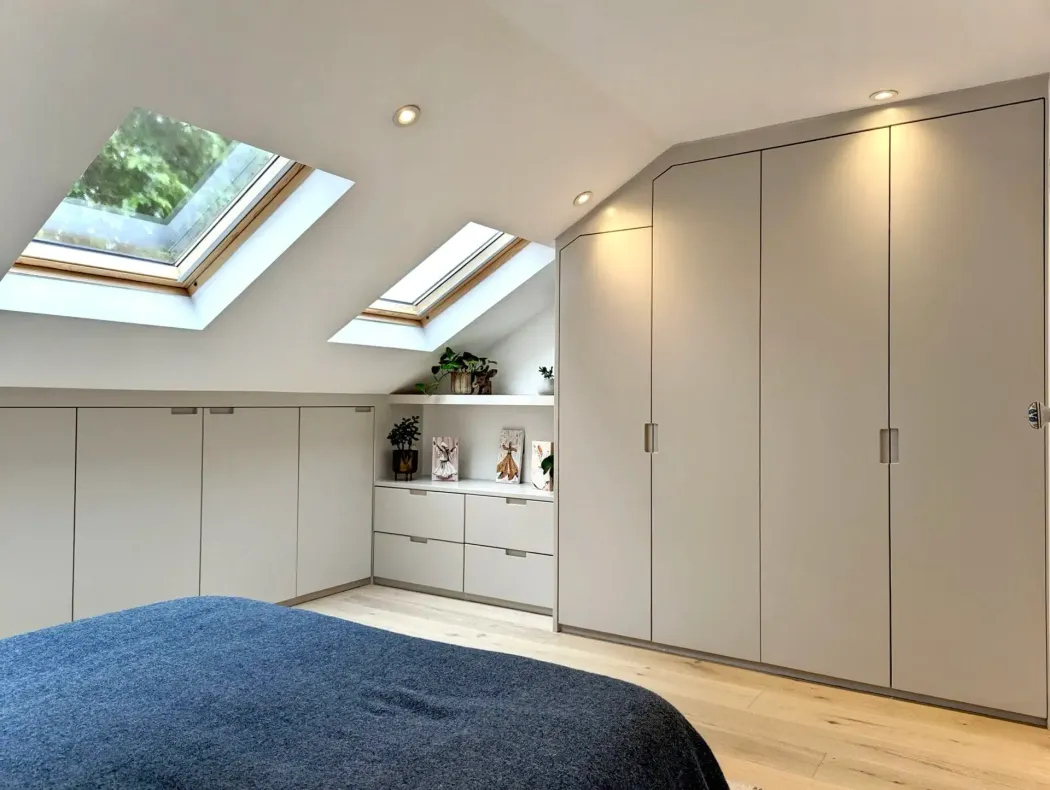 Loft conversions require clever storage solutions. Custom-built cabinets, shelving, and multifunctional furniture maximize underused areas, creating practical and stylish spaces for living, working, or relaxation. Built-in storage keeps the space uncluttered while maintaining an open, airy feel.