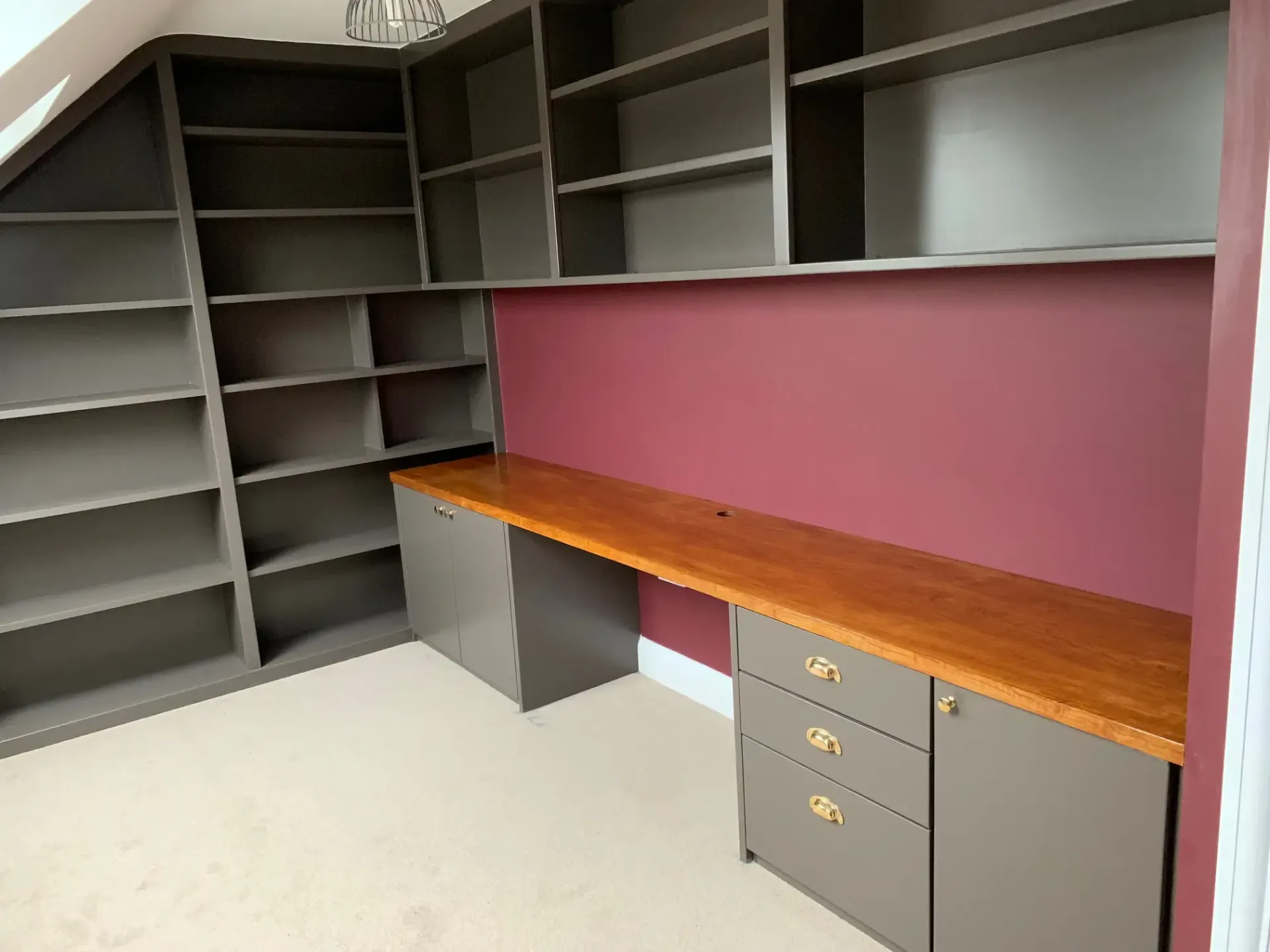 Every project begins with understanding your needs—whether that’s maximizing space, creating hidden storage, or complementing the existing décor of your London home. We take pride in using high-quality materials and time-honoured craftsmanship to build office desks that stand the test of time. Our expertise also ensures a seamless installation process, leaving you with a workspace that not only supports productivity but also enhances your home’s interior.